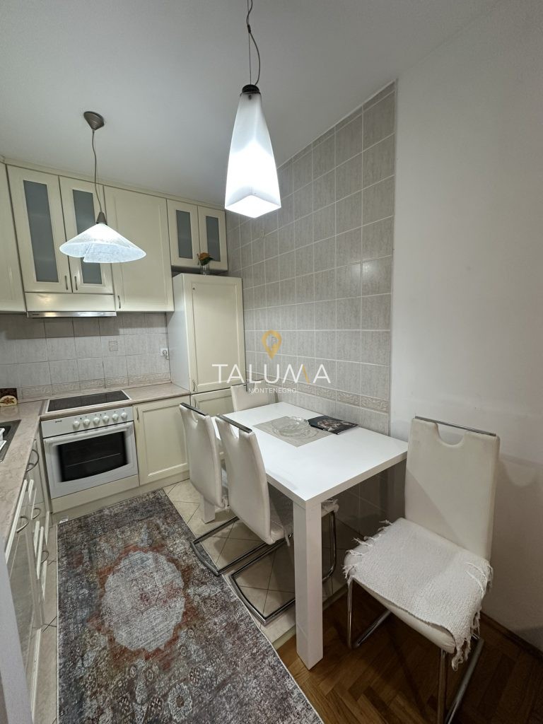 Izdaje se namješten dvosoban stan površine 60m2, Preko Morače. Stan je pozicioniran na prvom spratu stambene zgrade koja posjeduje lift.