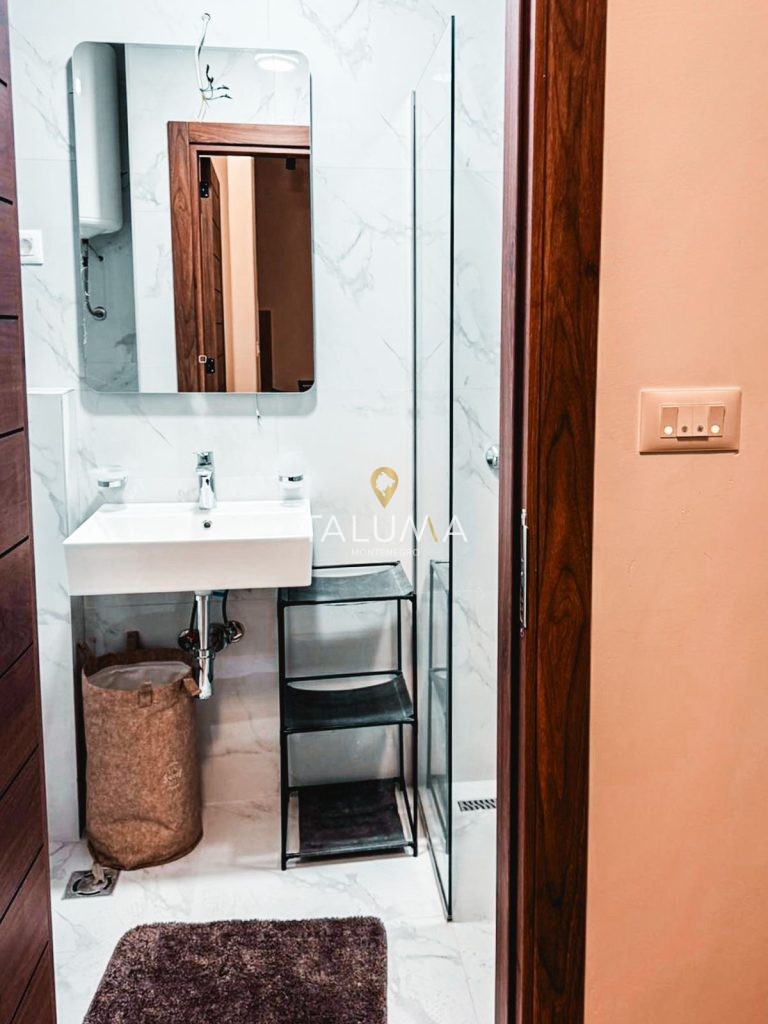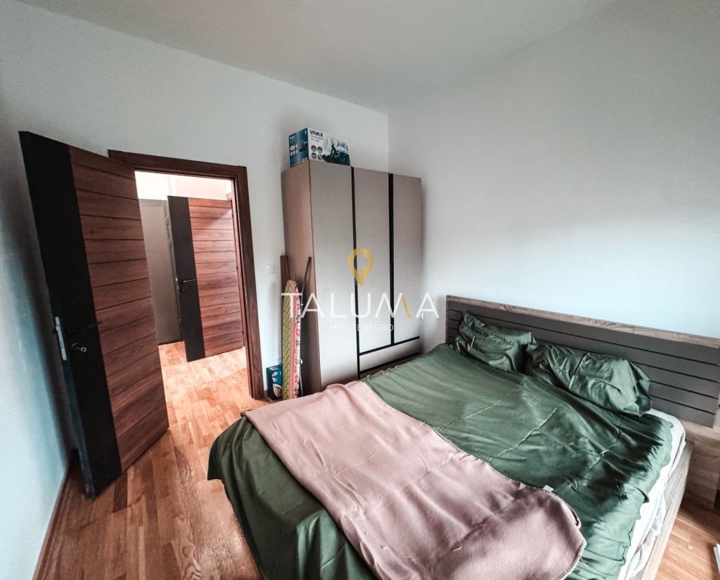 Izdaje se u potpunosti opremljen jednosoban stan 45m2, Donja Gorica. Stan je pozicioniran na prvom spratu stambene zgrade nove gradnje, koja ne posjeduje lift.