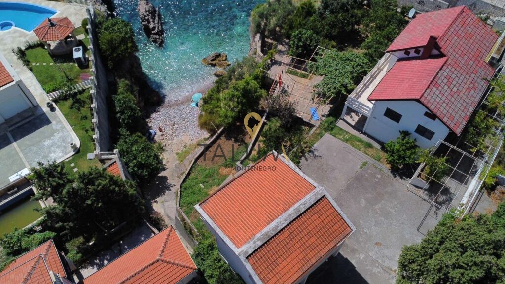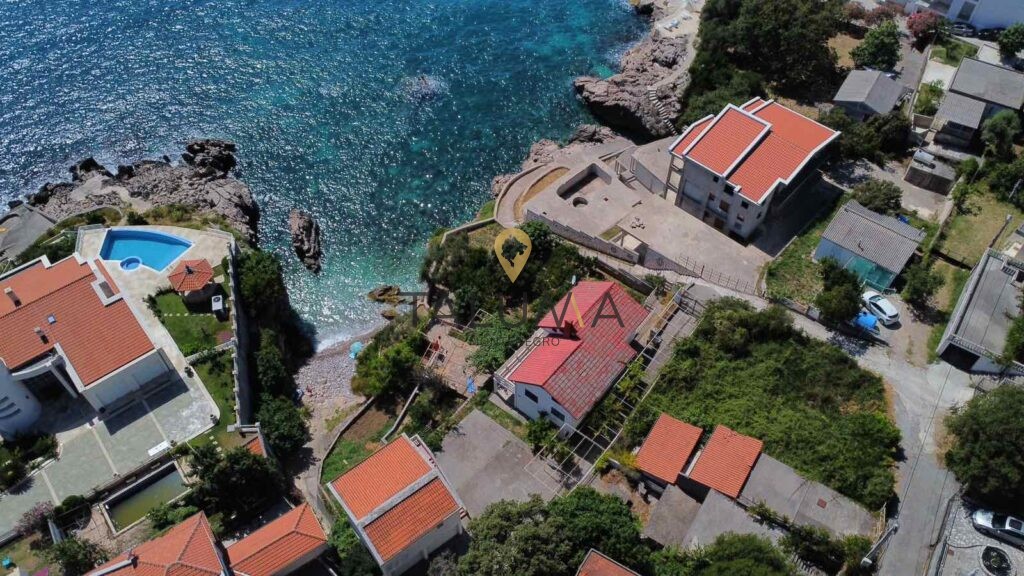 Ova nekretnina, iako trenutno u potrebi za obnovom, krije dublje mogućnosti sa direktnim izlazom na plažu.