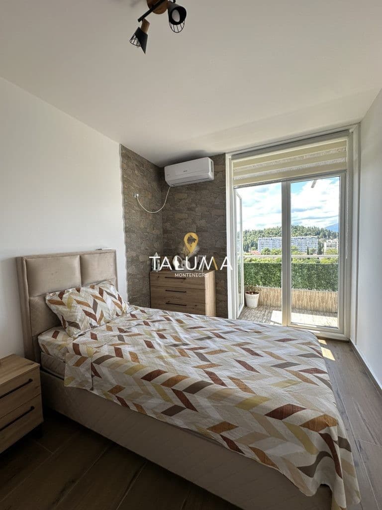 Prodaje se namješten trosoban stan površine 74m2 (LN 65m2), Tuški Put. Stan je pozicioniran na osmom spratu stambene zgrade koja posjeduje lift.