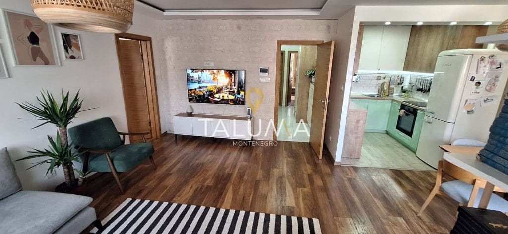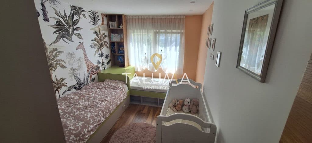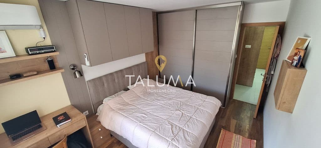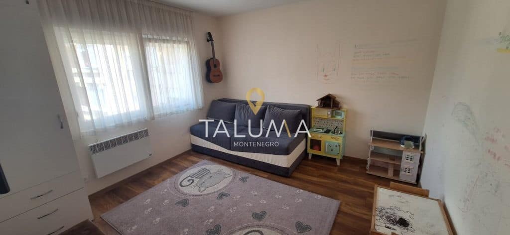 Struktura: ulazni hodnik, dnevna soba, trpezarija, kuhinja, tri spavaće sobe, kupatilo, toalet, vešeraj i dva balkona.